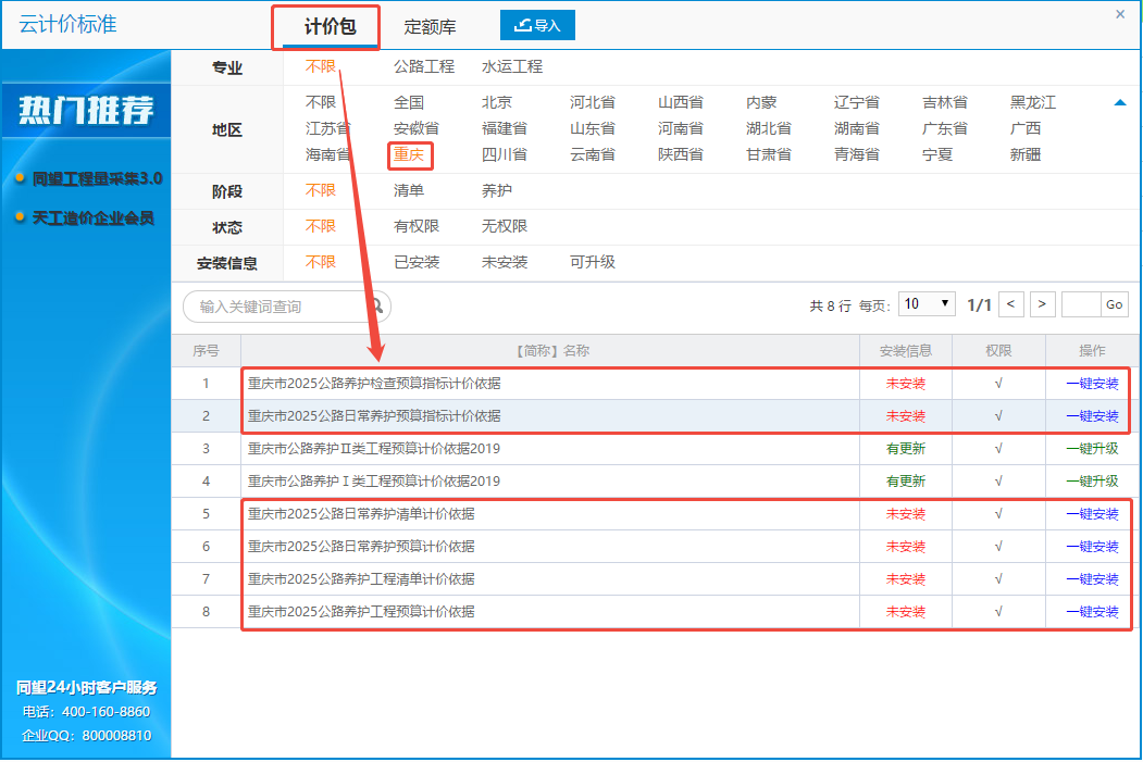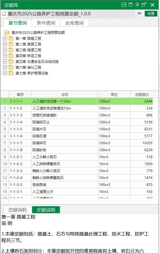 注:《重庆市公路养护预算定额》云服务安装免费使用。